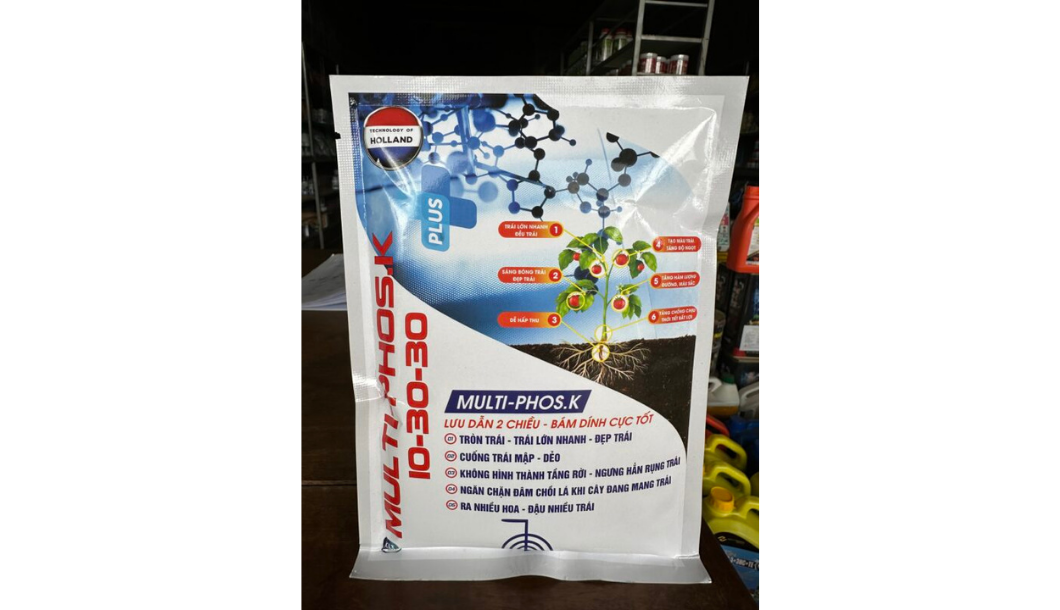 MULTI PHOS K RỒNG LỬA là dòng sản phẩm có thành phần 10-30-30, giúp lớn củ, to hạt, ngoài ra đây là dạng lân phosphonate lưu dẫn 2 chiều giúp tăng hiệu quả sử dụng.