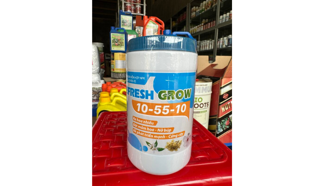 10-55-10 TRUNG HIỆP LỢI là sản phẩm giúp cây ra hoa đồng loạt, xử lý phân hóa mầm hoa. Tốt nhất nên kết hợp cùng kích phát tố và 0-60-20 hay lân 86.