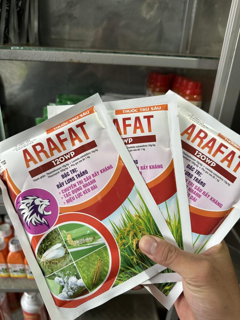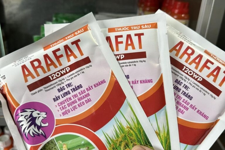 Thuốc trừ sâu Arafat 120wp của công ty Snewrice chứa 3 hoạt chất: Thiamethoxam, thiaclorid, lamba-cyhalothrin.