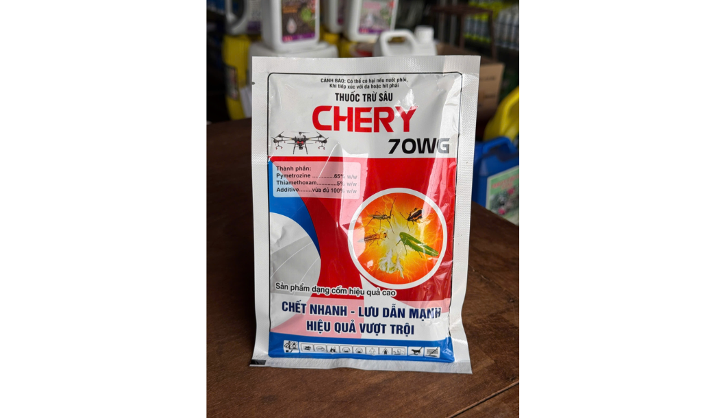 CHERY 70WG là thuốc trừ sâu thế hệ mới, kết hợp hai hoạt chất mạnh mẽ là PymetrozineThiamethoxam, được thiết kế để kiểm soát hiệu quả các loài côn trùng chích hút trên cây trồng.