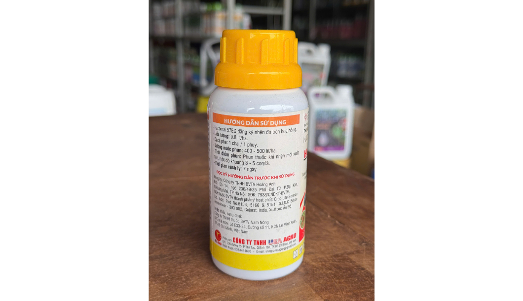 Đặc trị: HACOMAI 57EC là thuốc trừ nhện cao cấp, đặc trị nhện đỏ, nhện lông nhung, nhện gié, nhện vàng và một số loại sâu hại khác. Thuốc cũng được quảng cáo để diệt trừ rầy xanh và rầy nâu.