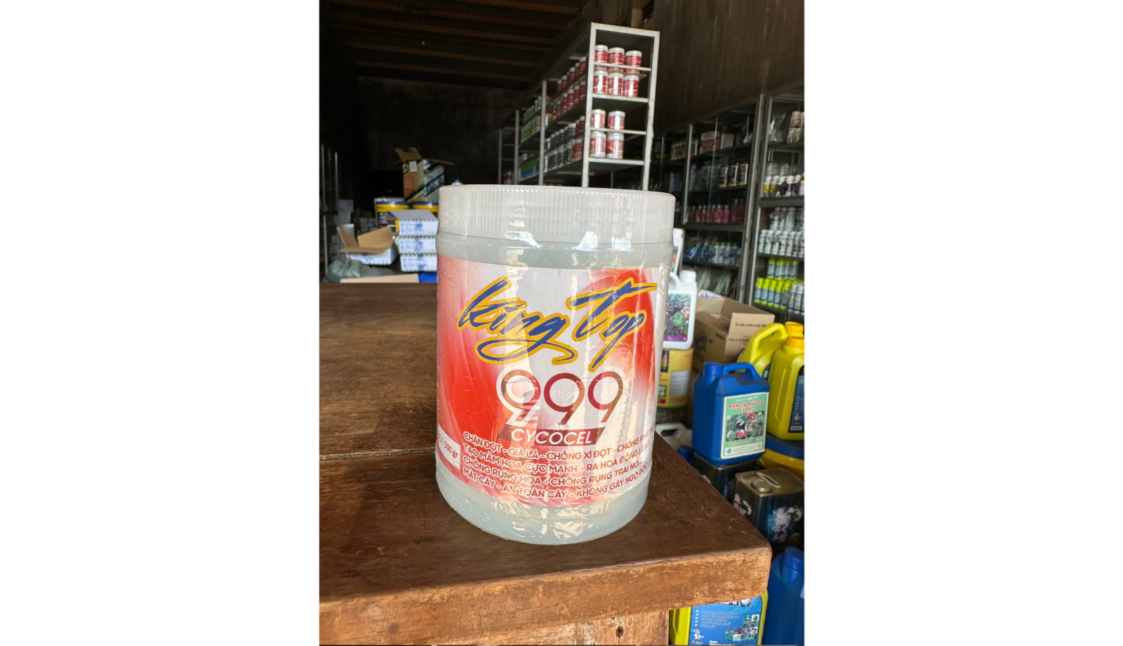 Chặn đọt, già lá: Hoạt chất Chlormequat chloride giúp ức chế sinh trưởng, làm cây lùn lại, mập thân, và làm già lá nhanh chóng.