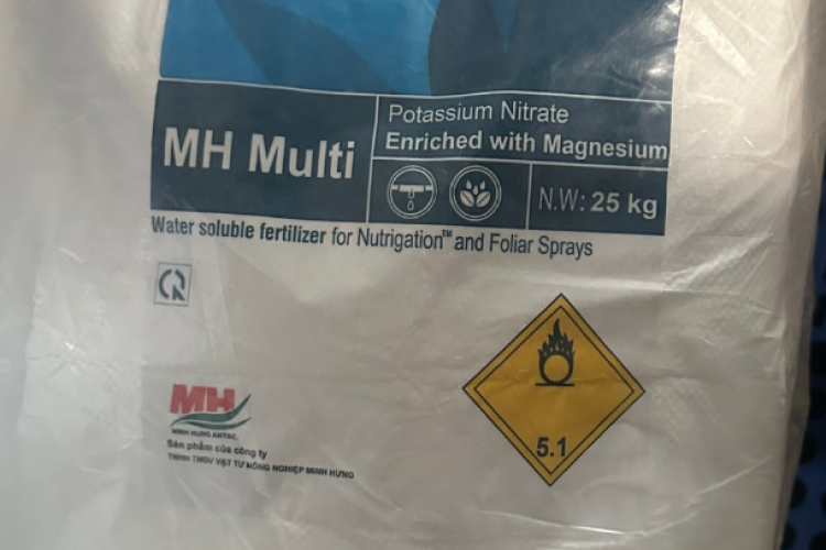 Phân bón lá có tên MH Multi K Mg sản phẩm này có công dụng chính là kích thích ra hoa, thúc đẩy trái ngọt, óng ánh và nặng trĩu.