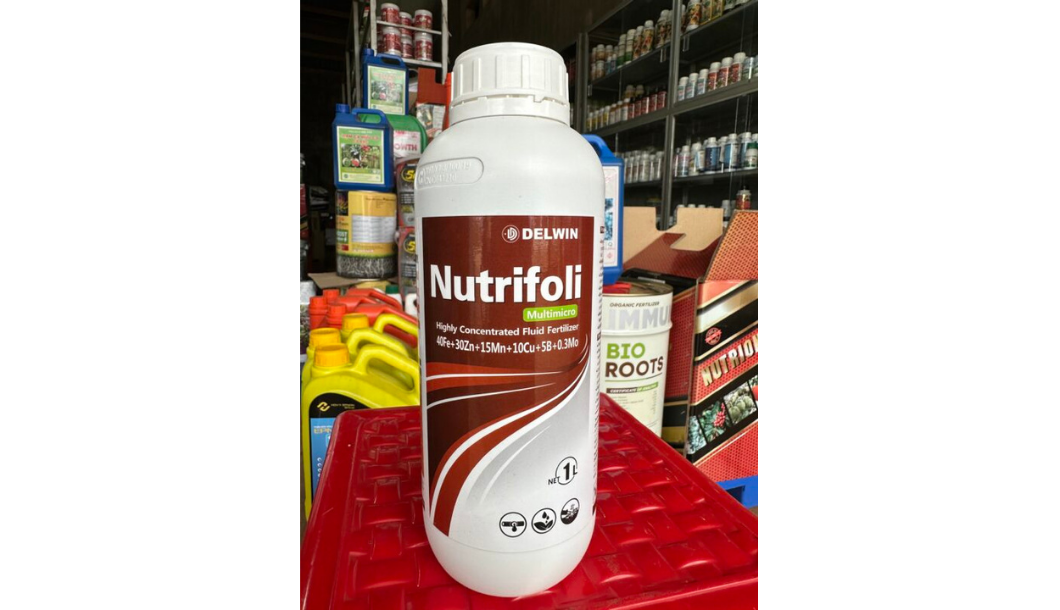 NUTRIFOLI DELWIN là kali dưới dạng chelate được nhập khẩu tại Đức, cùng các hàm lượng trung vi lượng cực kỳ cao. Giúp trái ngọt, hạn chế sượng múi, cháy múi, chắc nhận, nặng quả.
