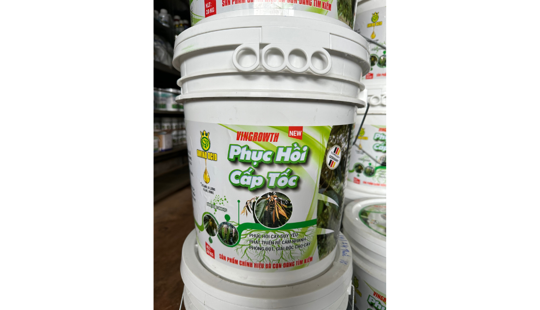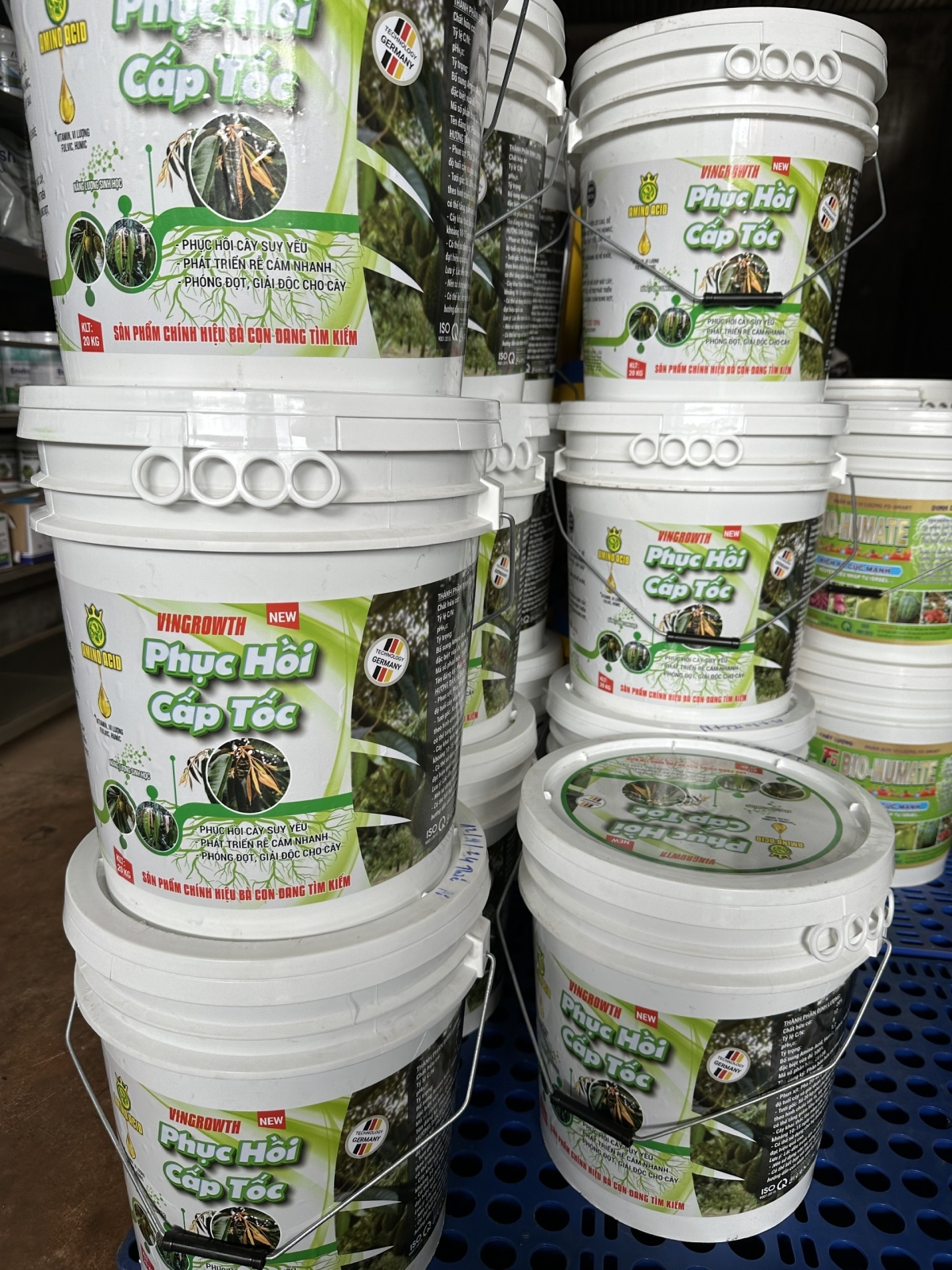 Sản phẩm là phân bón hữu cơ dạng lỏng PHỤC HỒI CẤP TỐC XÔ 20KG RỒNG LỬA. Đây là một loại phân bón kích thích ra rễ, giúp cây trồng có hệ thống rễ khỏe mạnh. CHỨA THÀNH PHẦN HUMIC, FULVIC, AMINO, TẢO BIỂN HÀM LƯỢNG CAO CÙNG CÁC ĐA TRUNG VI LƯỢNG ĐẦY ĐỦ. KÍCH THÍCH CÂY RA RỄ MẠNH, ĐỌT NHÚ NHANH, CÂY MAU PHỤC HỒI NHỜ DINH DƯỠNG CAO. LIỀU DÙNG 1L PHA 200-400L NƯỚC 1 XÔ 20L DÙNG CHO 100 CÂY SẦU RIÊNG.