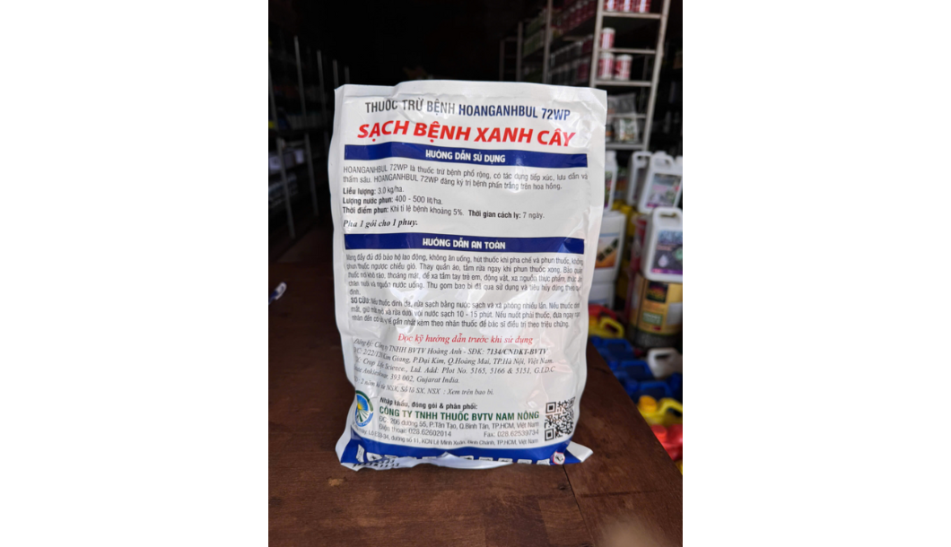 Công dụng & Đặc điểm: Trừ bệnh hại cây trồng, giúp sạch bệnh, xanh lá. Thuốc có tính năng bám dính nhanh, hiệu lực kéo dài, độ phủ cao và tan cực nhanh trong nước.